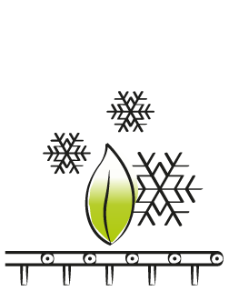 Once prepared, our vegetables are flash frozen in tunnel freezers at -30 °C. Flash freezing is a technique for quickly cooling a product until its core temperature reaches 18 °C. The vegetables are then stored in bulk at -18 °C.