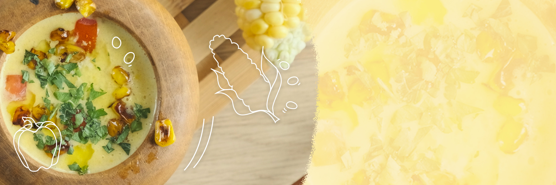 1. Hachez l’oignon et faites-le dorer dans un peu d’huile d’olive. Ajoutez le maïs d’aucy égoutté. Versez de l’eau chaude et ajoutez le bouillon de volaille.