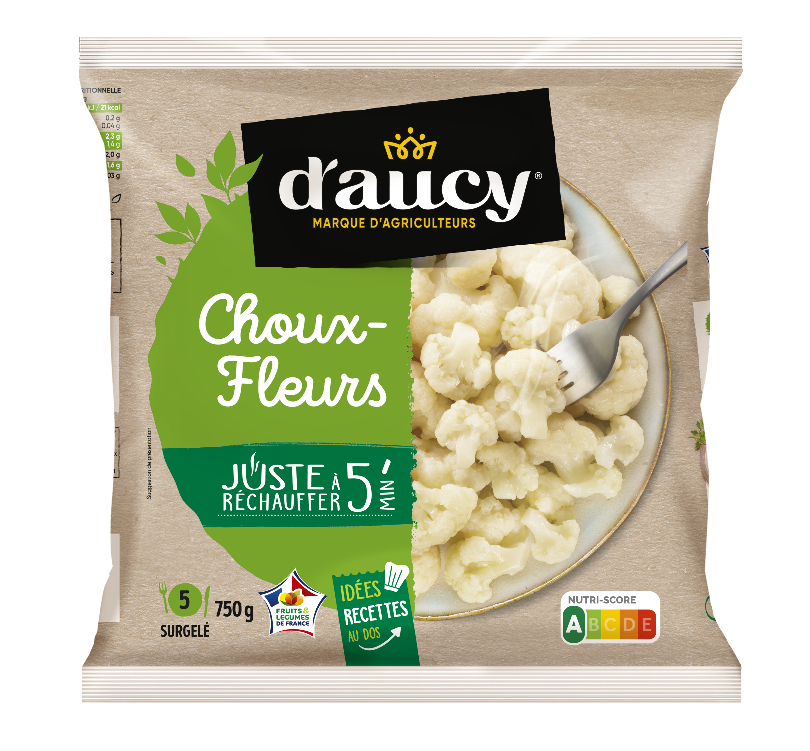 A nossa couve-flor é cultivada em campo aberto em França e colhida na época ao atingir a maturidade certa. É pré-cozinhada e congelada para preservar todas as suas qualidades.