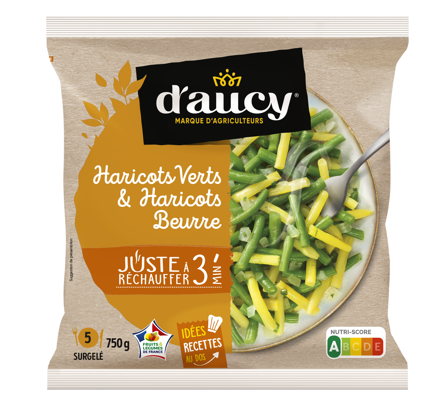 O nosso feijão é cultivado em campo aberto em França e colhido na época ao atingir a maturidade certa. É pré-cozinhado e congelado para preservar todas as suas qualidades.