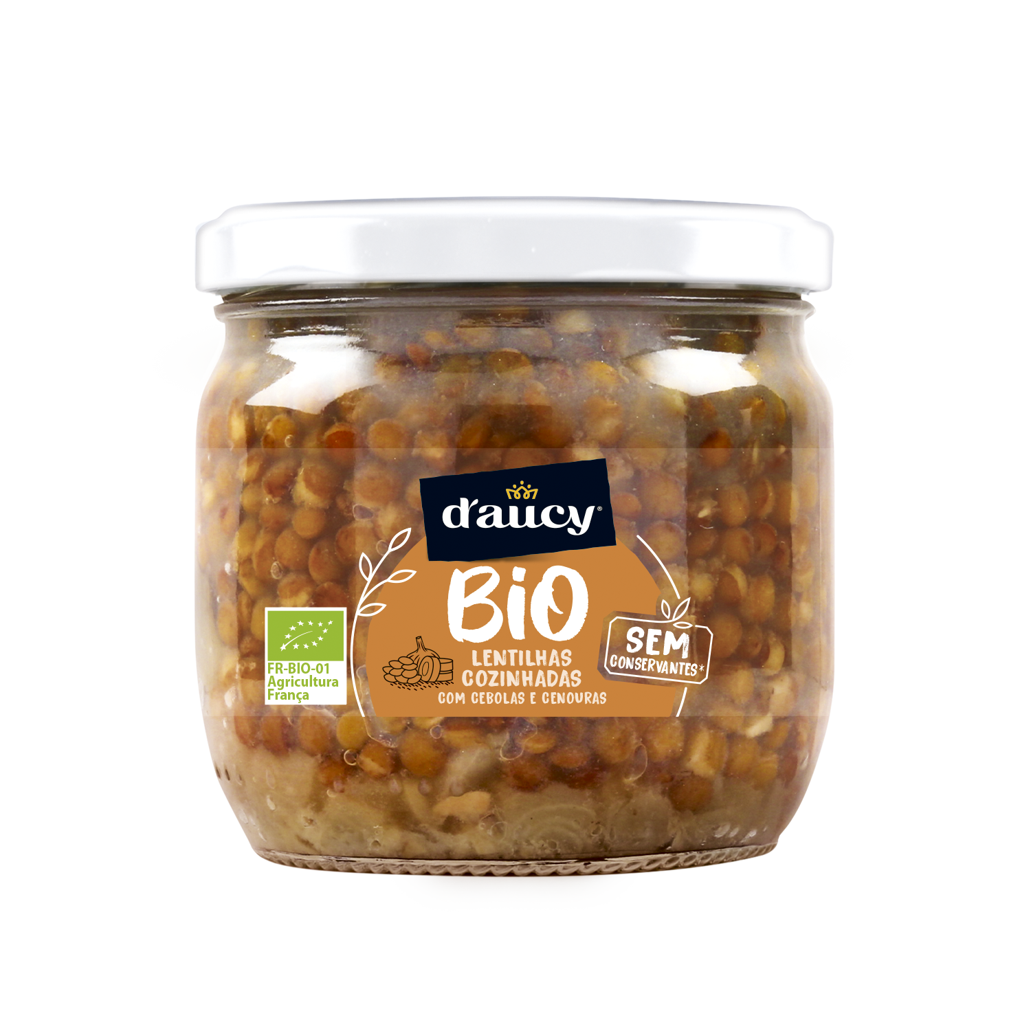 Água, lentilhas verdes* (37%), cebolas* (3,4%), cenouras* (3,3%), alho*, sal marinho, loureiro*, pimenta*.