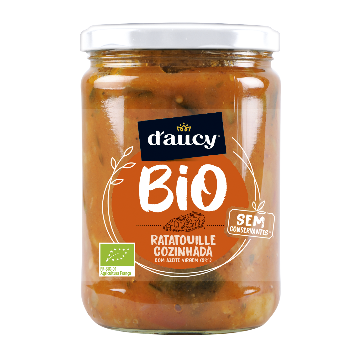 Curgetes*, tomates*, sumo de tomate*, beringelas*, cebolas*, polpa de tomate ultraconcentrada*, pimentos vermelhos*, pimentos verdes*, azeite virgem* (2%), açúcar de cana*, sal marinho, amido*, alho*, concentrado de sumo de limão*, tomilho*, pimenta*.