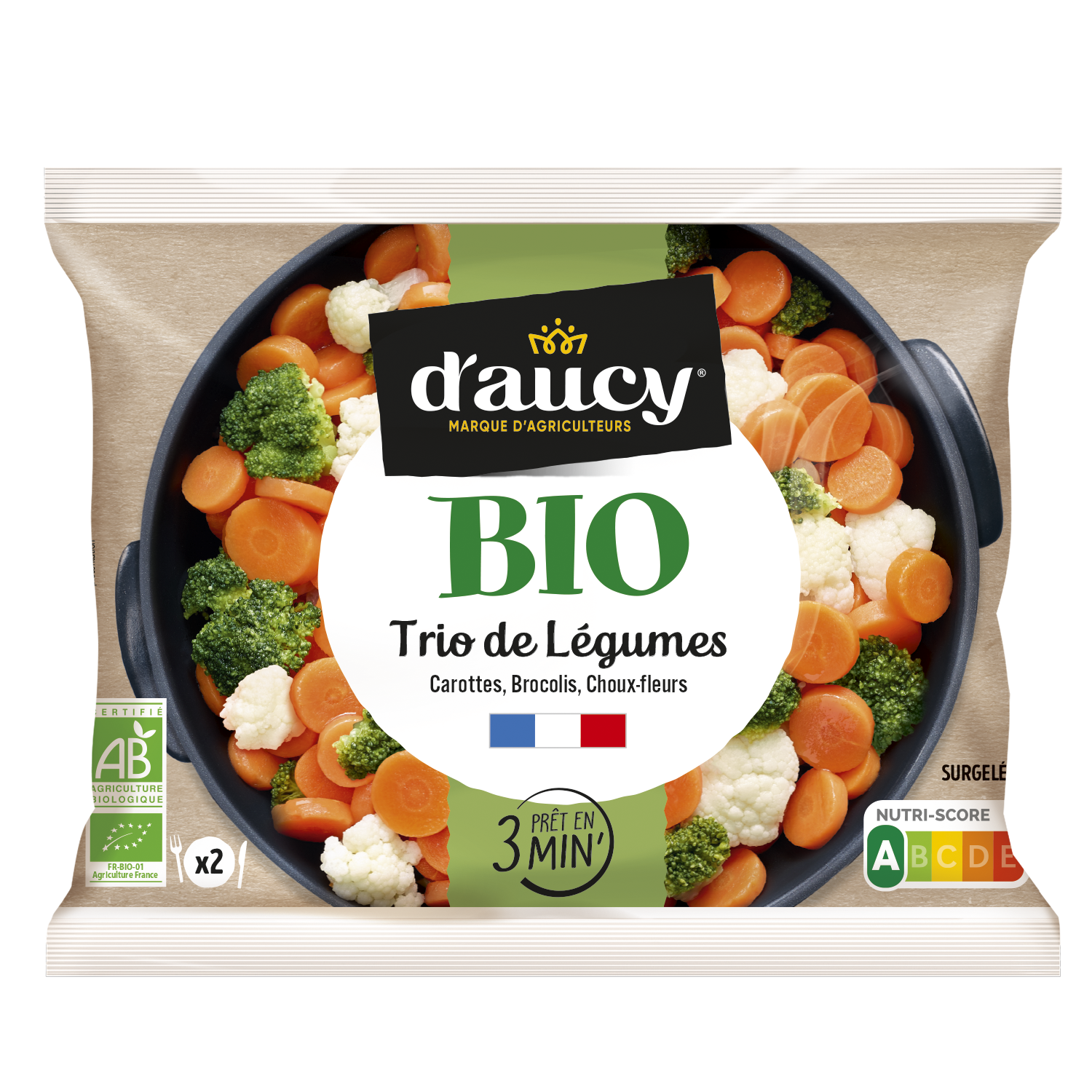 Os nossos legumes são cultivados em campo aberto em França e colhidos na época ao atingirem a maturidade certa. São congelados para preservar todas as suas qualidades.