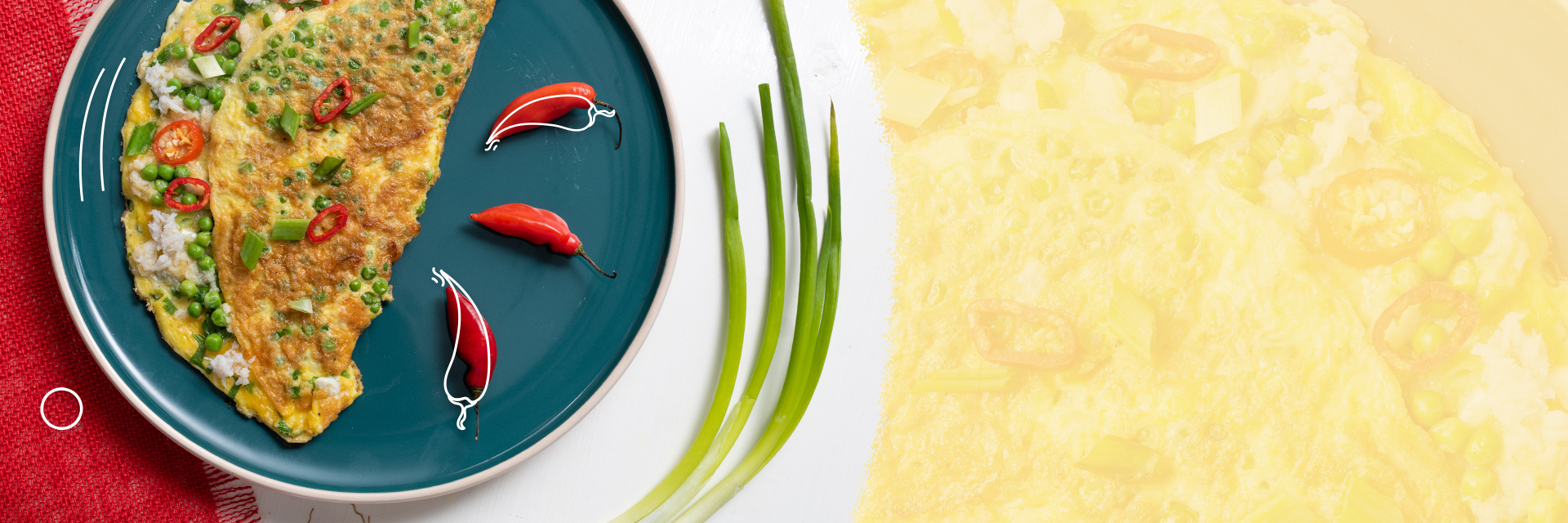Omelete de ervilhas e caranguejo