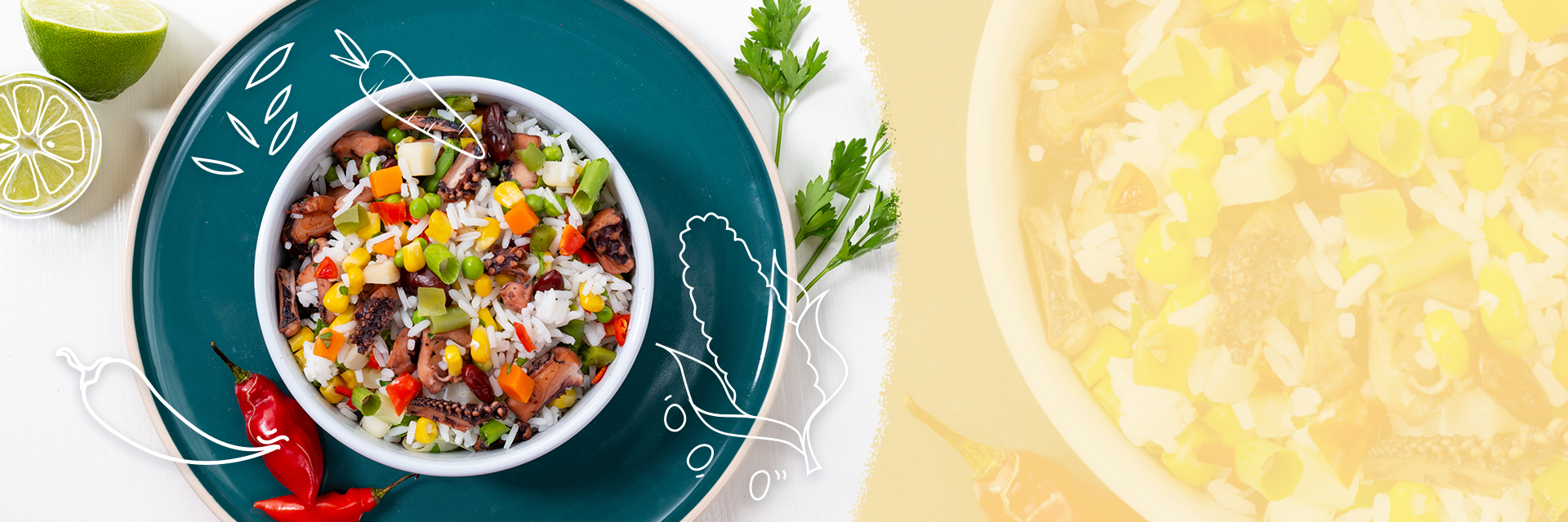 Página inicial do sítio > Ideias de Receitas > Salada de arroz de polvo com mistura das Caraíbas