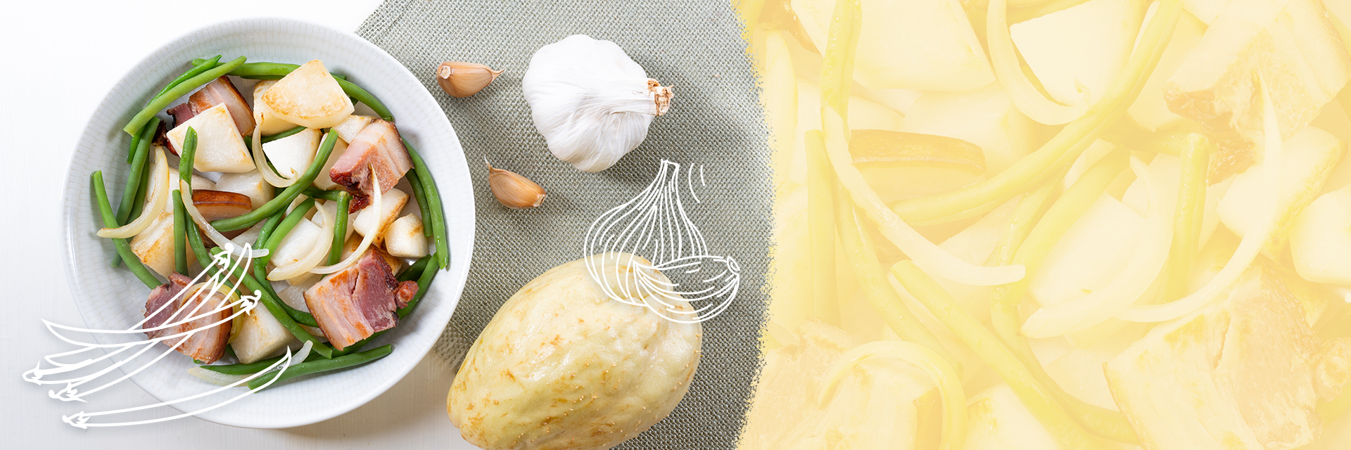 Página inicial do sítio > Ideias de Receitas > Salteado de feijão-verde e abóbora com toucinho fumado